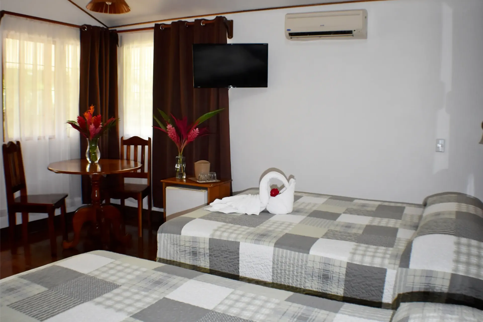 Welcome to Hotel Arenal Country Inn, your gateway to a unique experience in the heart of Costa Rica's natural paradise! Nestled at the foot of the majestic Arenal Volcano, our hotel offers inviting rooms surrounded by lush gardens, perfect for birdwatching at sunrise or sunset. With comfortable amenities and a short stroll to La Fortuna town, you can immerse yourself in the local culture while enjoying our large swimming pool and tour services. Your adventure in Arenal begins here: discover nature, comfort, and hospitality all in one place!