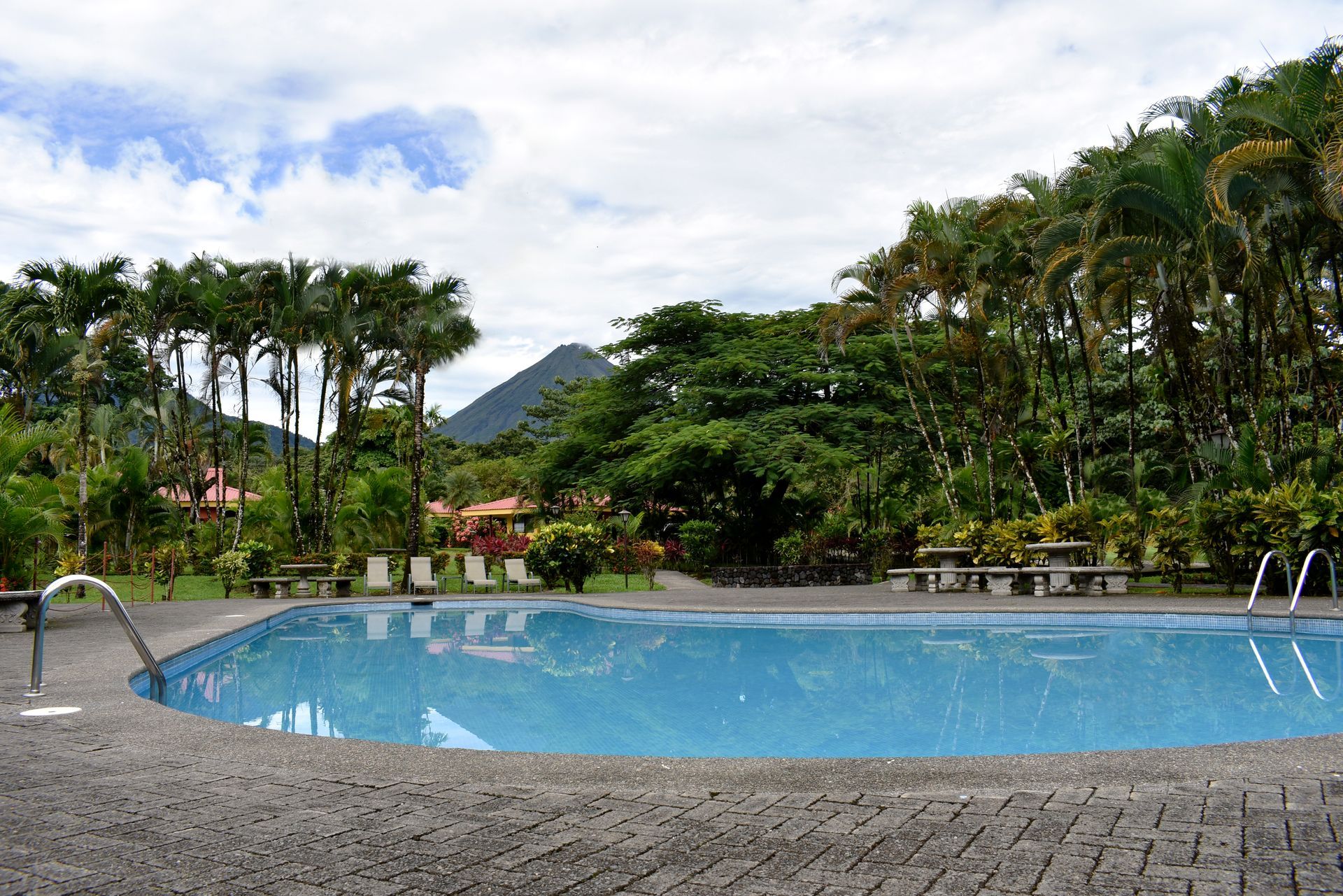 Relax in our outdoor swimming pool with views of the Arenal Volcano and surrounding greenery.